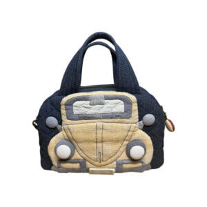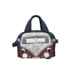 The adjustable crossbody strap allows for comfortable hands-free wear, making it ideal for daily errands, casual outings, or travel. Lightweight yet distinctive, this retro camper van bag blends fun design with practicality, making it a unique piece for anyone who loves vintage style and handcrafted details. One one side, there is a yellow Beetle, while on the other, it is a red Volkswagen.